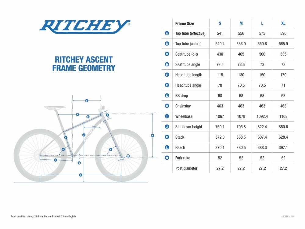Tom Ritchey aime vivre toutes sortes d’aventures à vélo – surtout en tout-terrain – en recherchant des chemins de terre sinueux, en se promenant sur des pistes en gravel et en enchaînant des singletracks fluides. Il a conçu cette dernière version de l’Ascent pour en faire un vélo d’aventure polyvalent, afin que d’autres puissent partager les mêmes sensations et profiter de la légendaire expérience d’être au guidon d’un Ritchey.