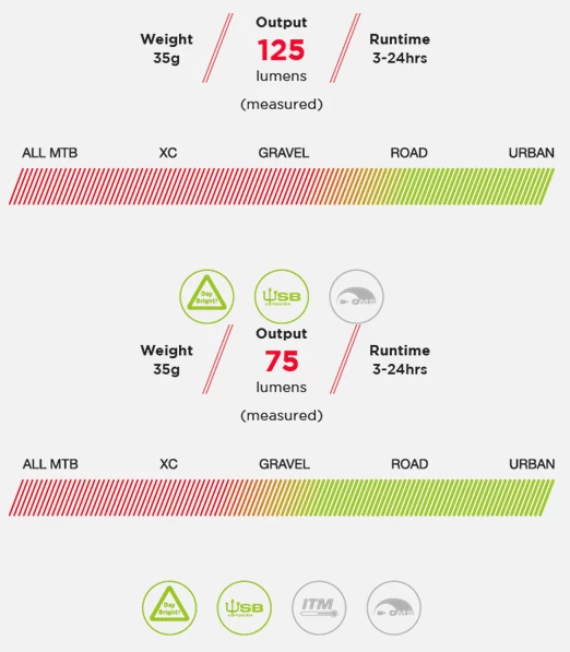 | Max Lumens | Front:125|Rear:75 |